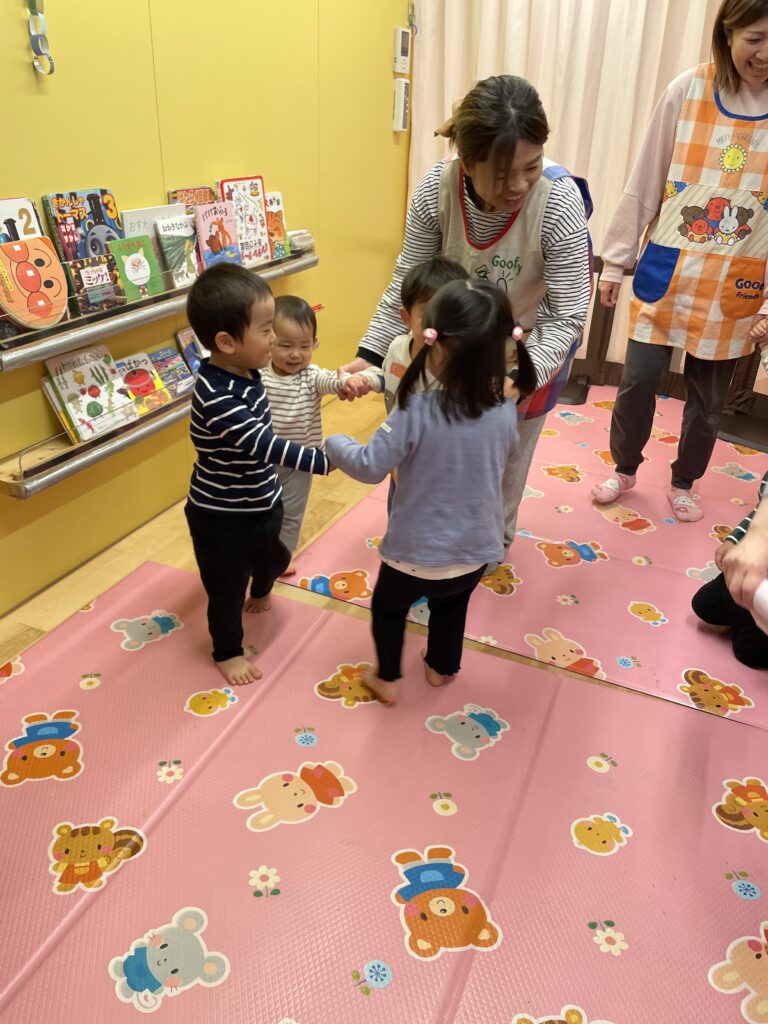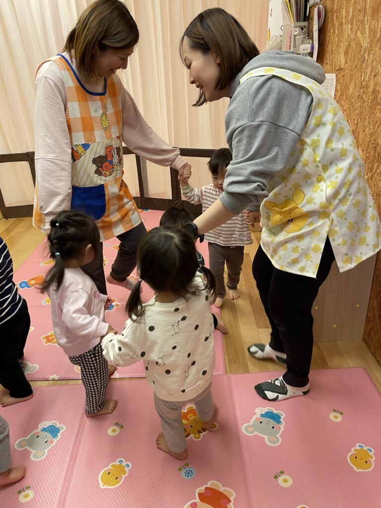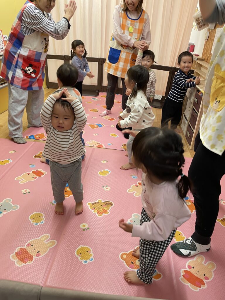 きのこブームのさくらんぼ組さん😊今日も元気よく「ドコノコノキノコ♪」を踊っていました!キノコのポーズがとっても可愛いです(*^-^*)