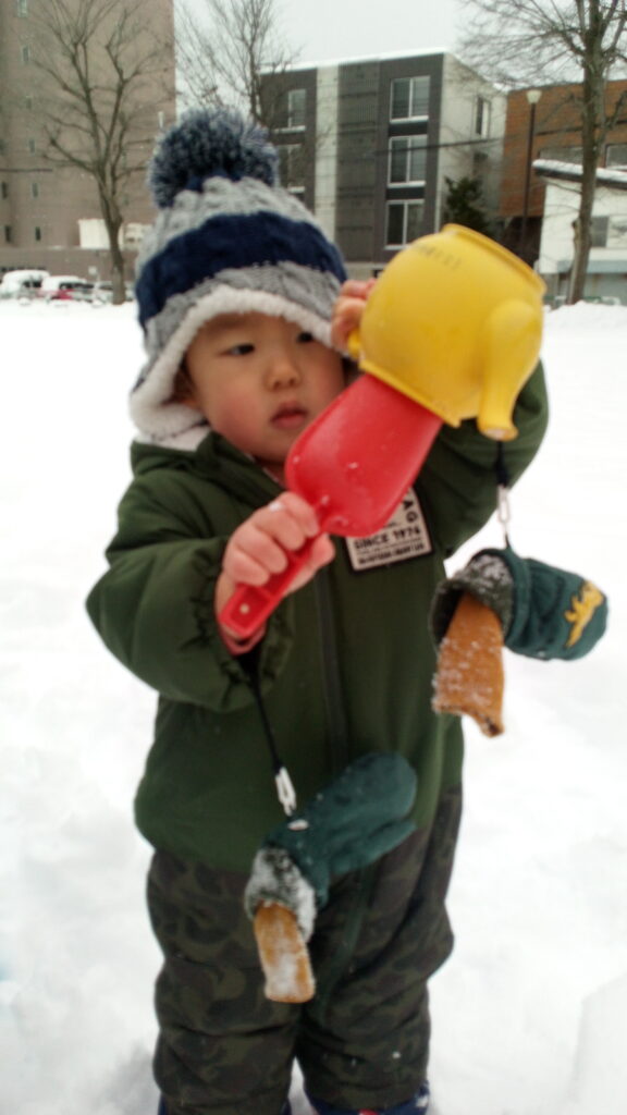 手袋はあそびにくい!と脱いでしまう子も。手がかじかんでしまうので、手袋を履いてあそべるように少しずつ練習します!ほっぺを真っ赤にして「楽しかったー!」と帰ってくる子どもたちがとても愛らしいです(#^.^#)