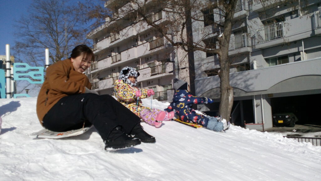 おうちの人に作ってもらった米ぞりで初めて滑ってみました(^-^)初めは少し怖がる子もいましたがだんだん慣れて楽しめるようになってきました!北海道の冬満喫するぞー!!