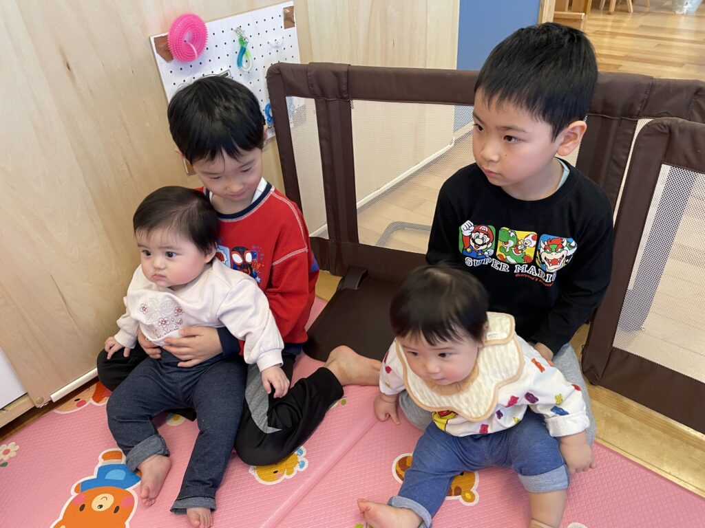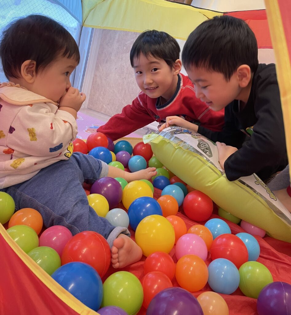 赤ちゃんを優しく抱っこしてくれたり、ボールテントに一緒に入ってあそんでくれたり、ゲームでもりあがったり…たくさんふれあうことができて、東白石のお友だちもとっても喜んでいましたよ!年長さんありがとう♡