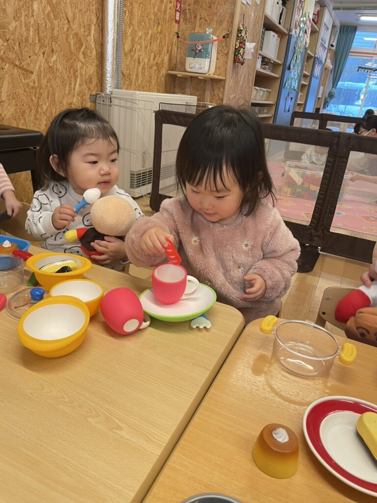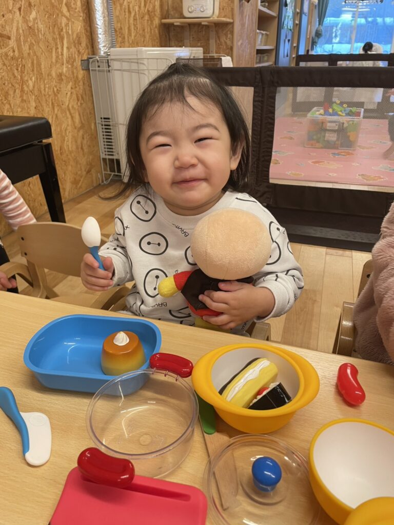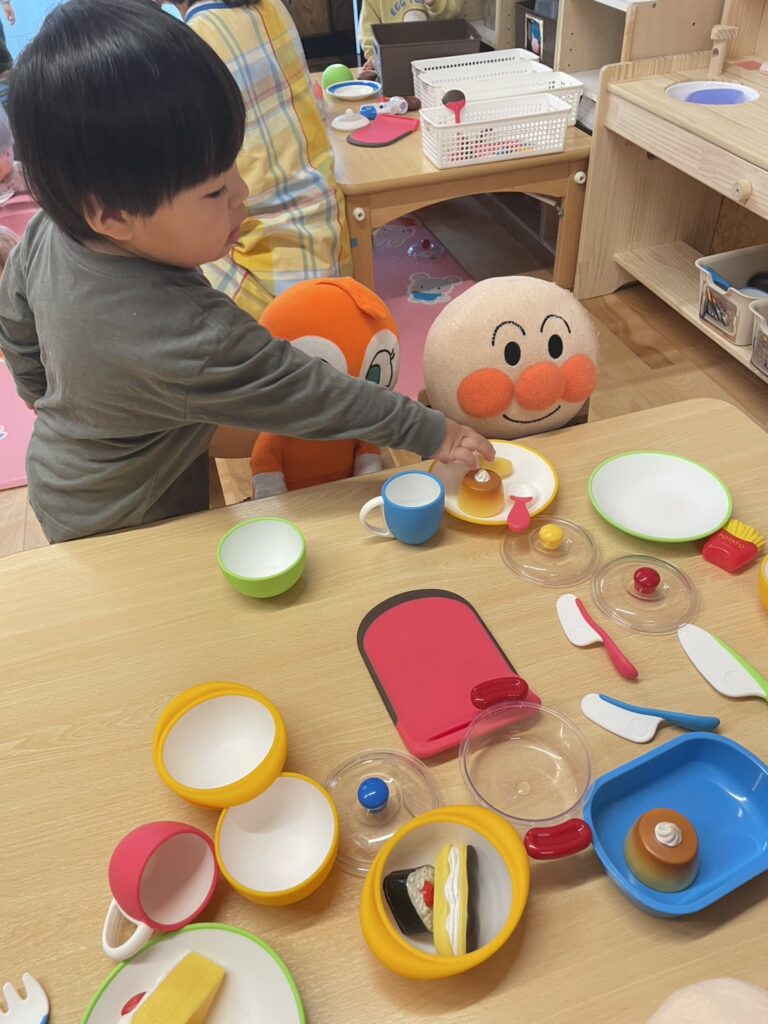 色々とご飯やデザートを作っては、お人形やお友だち、先生にはいどうぞーと渡してましたよ。