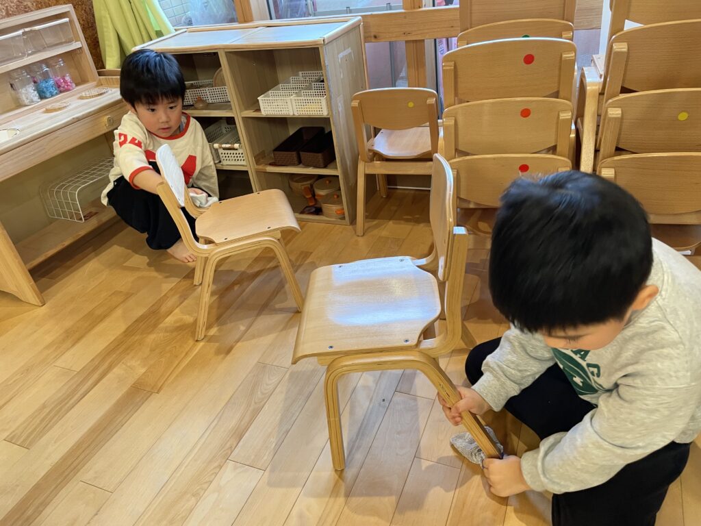 使っているおもちゃや、棚、椅子などみんなで協力をしてきれいにしてくれましたよ★