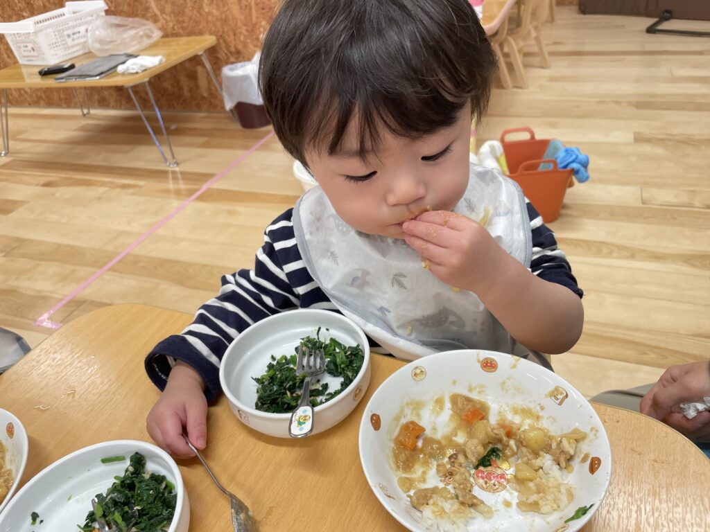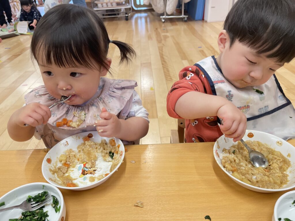 いちご組さんはとても食欲旺盛で大好きなカレーライスは笑顔でおかわりしています!