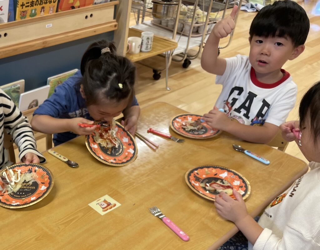 5歳児クラスは、包丁に挑戦♪ハムを切ってもらいました!!