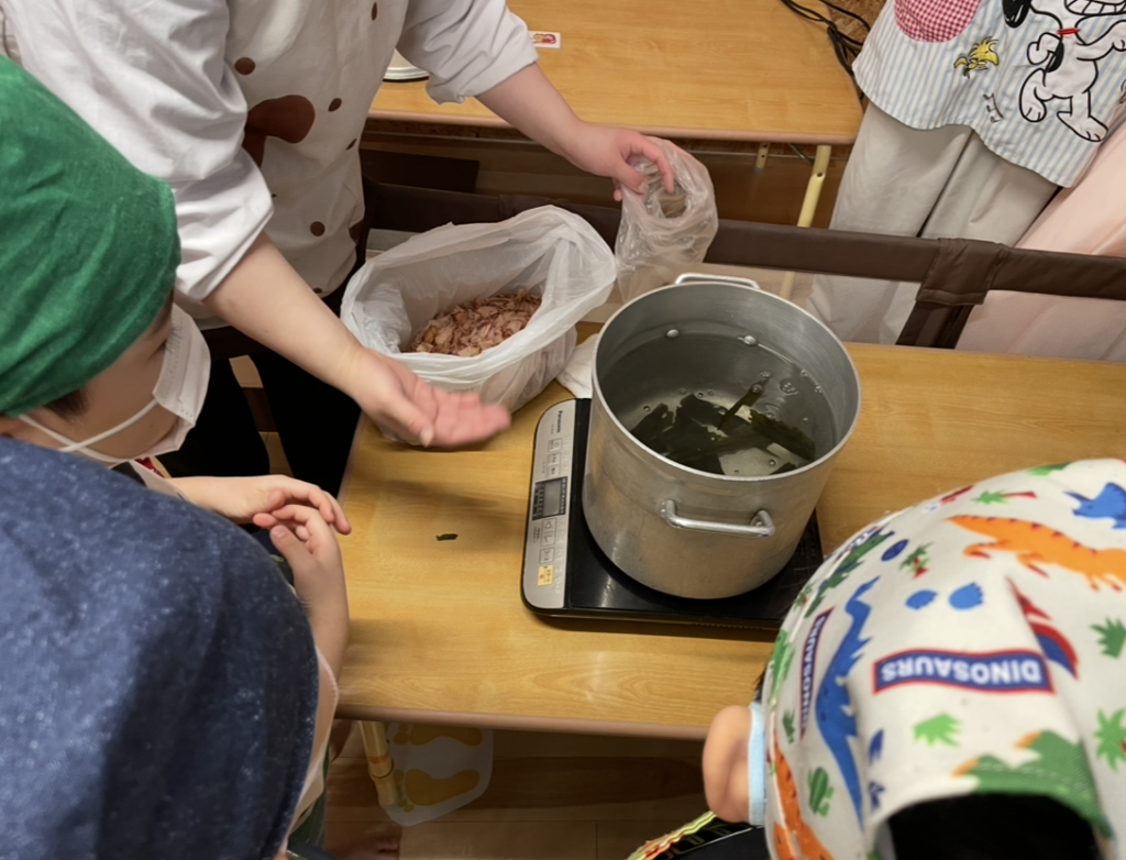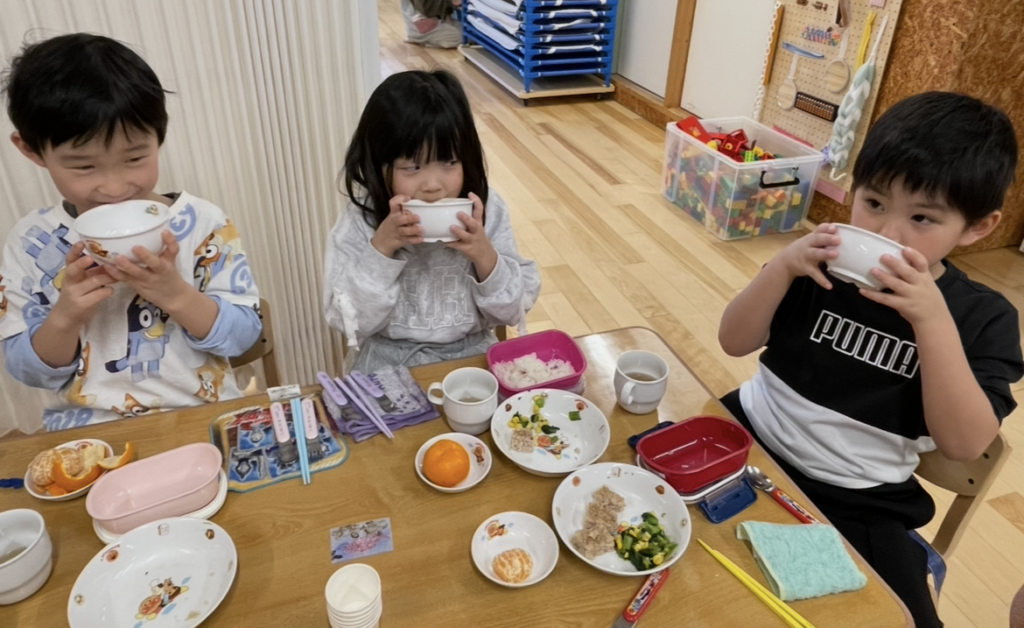 3/17は卒園するめろん組さんが手作りのお味噌で豚汁を作りみんなに振舞ってくれました!出汁からとり、野菜も切り、めろん組さんの愛情を感じました♪お味噌はみんなで作った味噌を使いましたよ。
