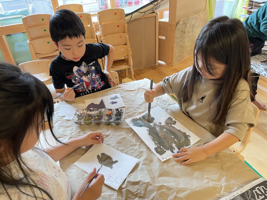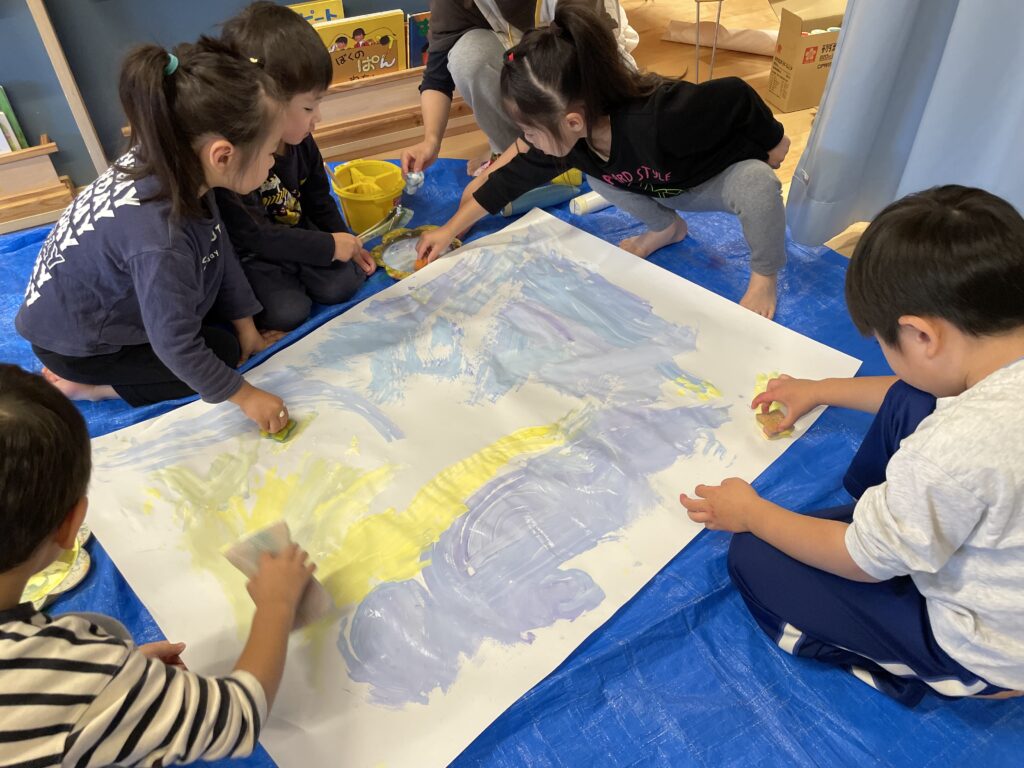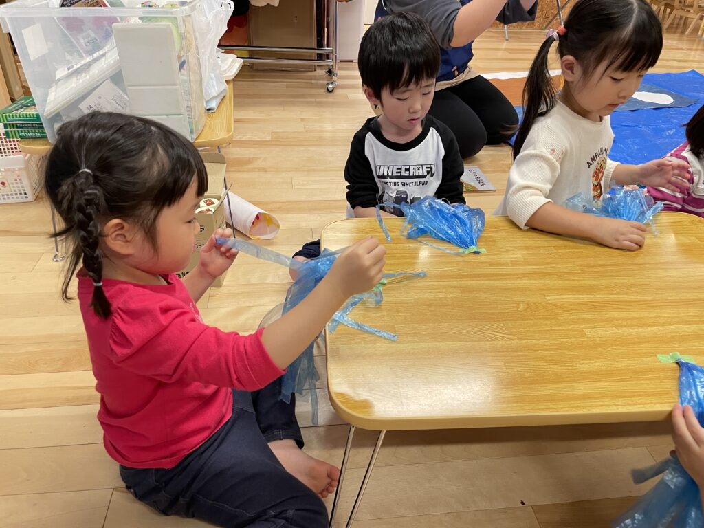 劇(スイミー→4.5歳児クラス もりのおふろ→3歳児クラス)などで使う小物や、壁画も一緒に作ってきますよ!!