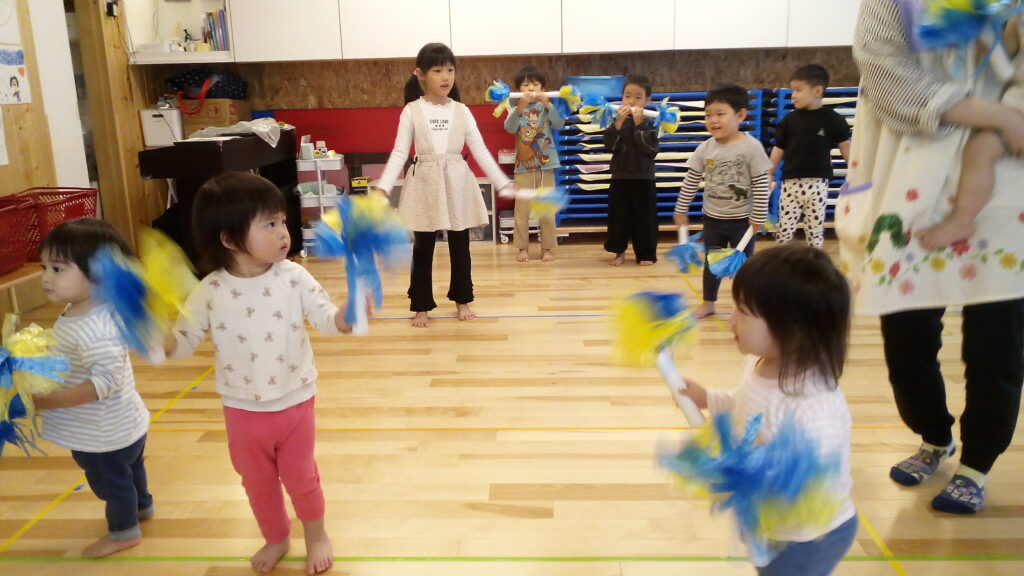 1歳児から5歳児までみんなで何度も踊ったり、個人競技も部分的ではありますが嬉しそうにやったりして楽しみました。