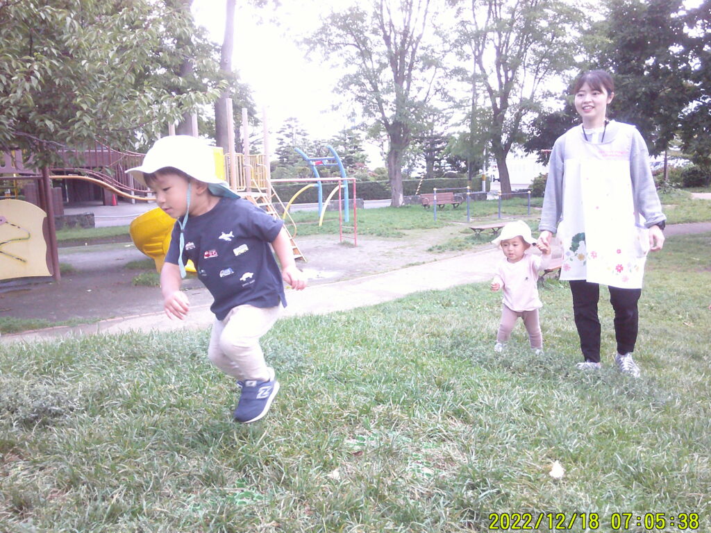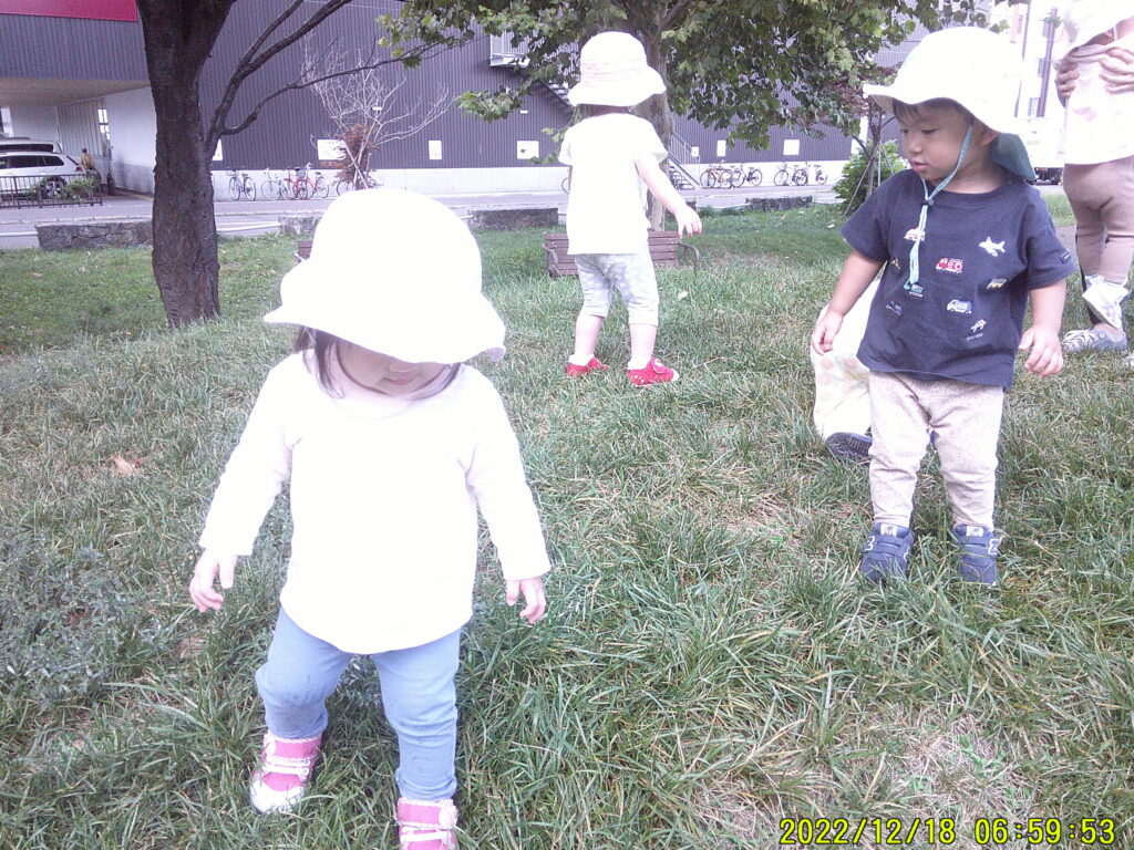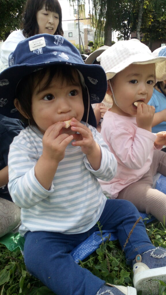 この日は特別に公園でおやつを食べ、前日から何を食べるのかを見ていたので、「せんべいー!」と嬉しそうにおやつを食べていました☆
